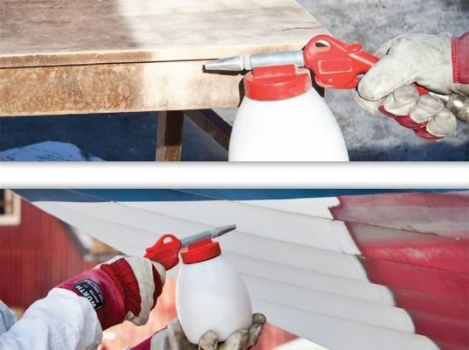 Sodablasting cleans paint off glass surfaces or window frames without damaging the glass or rubber seals.