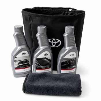 Toyota Car Care rinkinys – praktiškas automobilio priežiūros komplektas, skirtas kasdienei automobilio švarai ir vidaus bei išorės priežiūrai. Rinkinys supakuotas patogiame juodame užtraukiamame dėkle, todėl visas priemones patogu laikyti automobilyje, garaže ar pasiimti į kelionę.