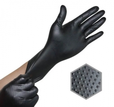 Nitrilo pirštinės Diamond Textured Black 100 vnt – tai tvirtos ir patvarios vienkartinės pirštinės, skirtos profesionaliam naudojimui dirbtuvėse, autoservisuose, valymo, dažymo, priežiūros ir kituose darbuose. Dėl abipusės deimantinės tekstūros ir pilnai tekstūruoto paviršiaus jos suteikia užtikrintą sukibimą net dirbant sudėtingesnėmis sąlygomis.