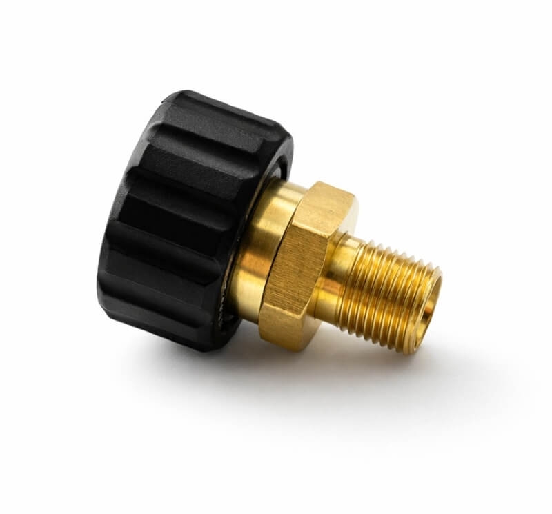 Srieginė jungtis M22-1,5F x 1/4M, skirta patogiam ir patikimam skirtingų plovimo ar purškimo sistemos komponentų sujungimui. Tinka profesionaliam ir kasdieniam naudojimui.