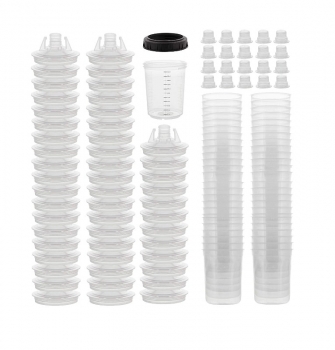 Комплект одноразовых стаканов EPS 1.0 с крышками: 850 мл, 125 мкм, 50 шт. Удобно для смешивания, закрытия и хранения материалов при покраске.